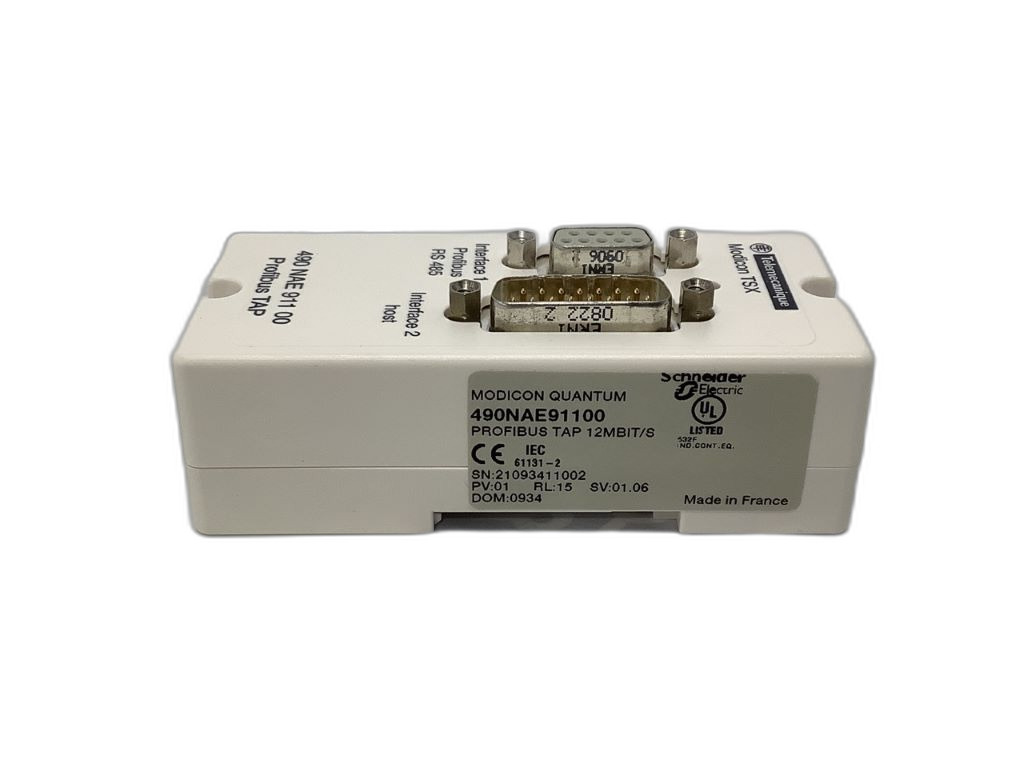 490NAE91100 Boîtier de distribution de bus principal Modicon Premium Schneider Electric pour Profibus DP 24 VDC 4A 1 segment SUB-D 9 broches 125 x 70 x 32 mm IP20