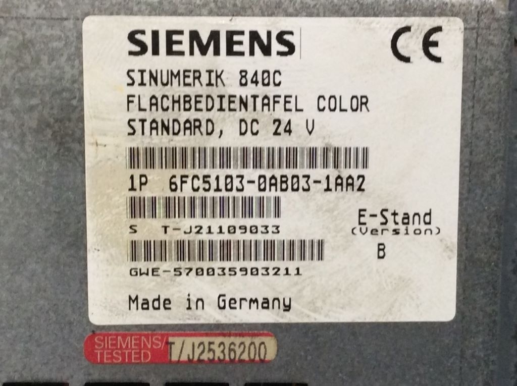 Panneau Plat de Contrôle SINUMERIK 840C Siemens 6FC5103-0AB03-1AA2