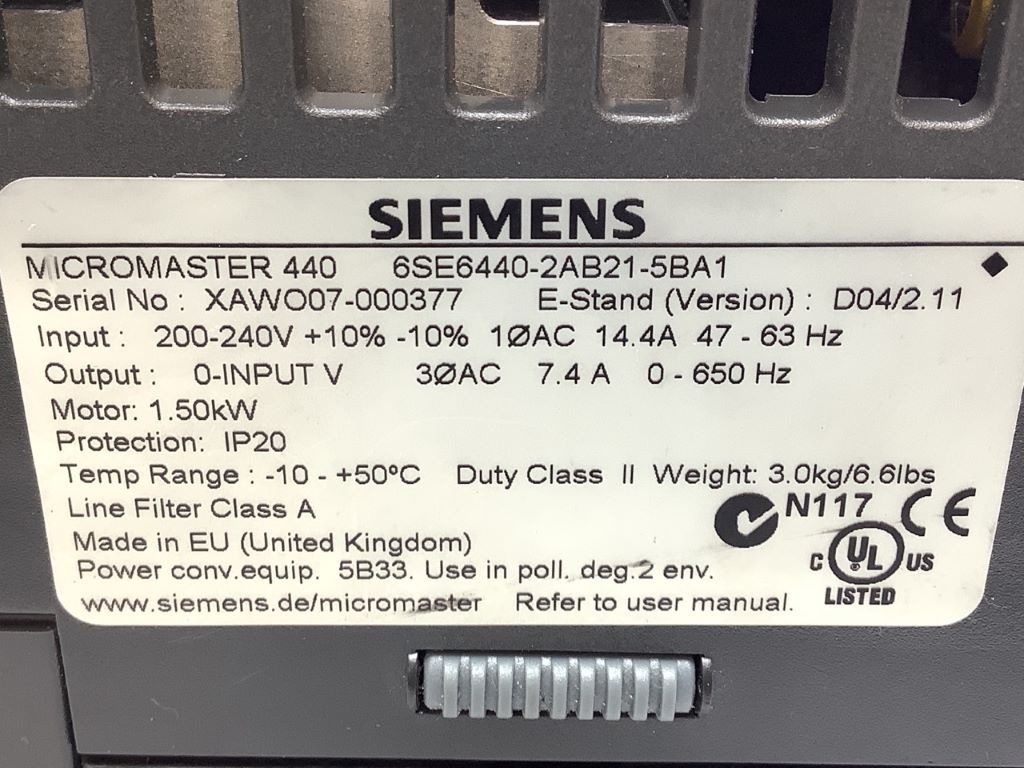 Variateur de Fréquence MICROMASTER 440 Siemens 6SE6440-2AB21-5BA1