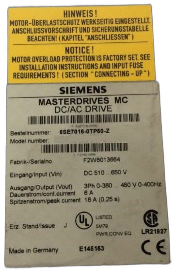 6SE7016-0TP50-Z