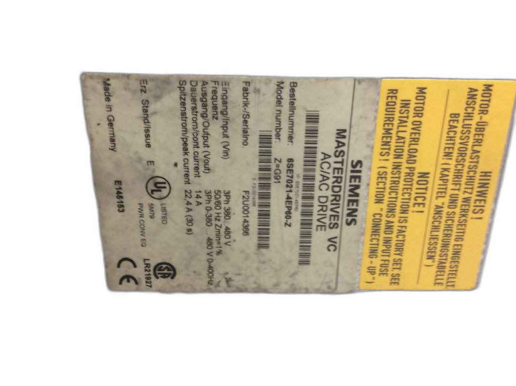 6SE7021-4EP60-Z Simovert Masterdrives Siemens