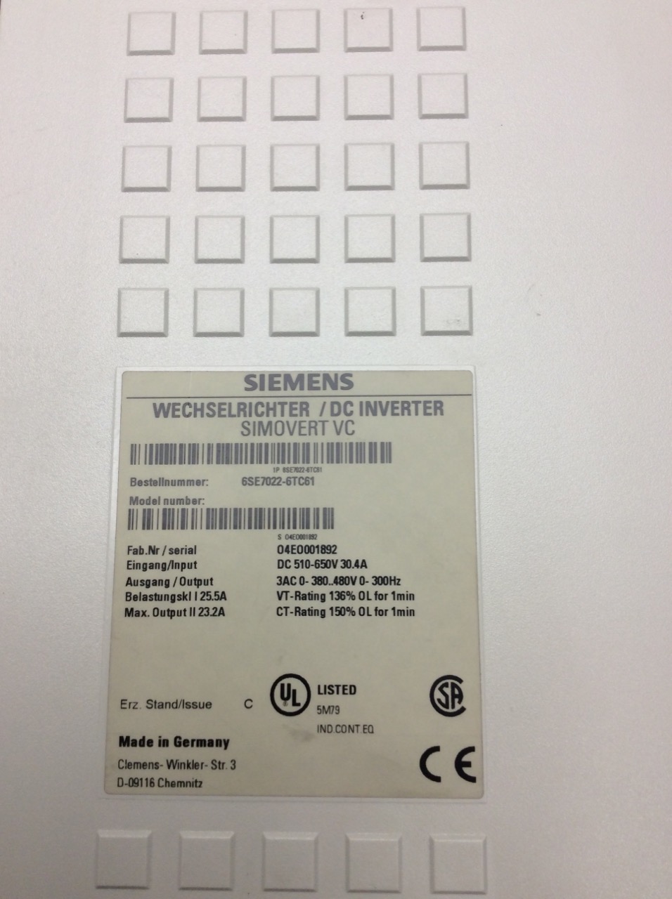 6SE7022-6TC61 Simovert Masterdrives Siemens