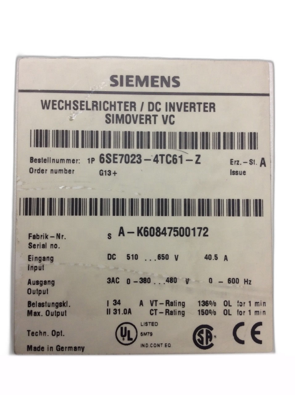 6SE7023-4TC61 Simovert Masterdrives Siemens