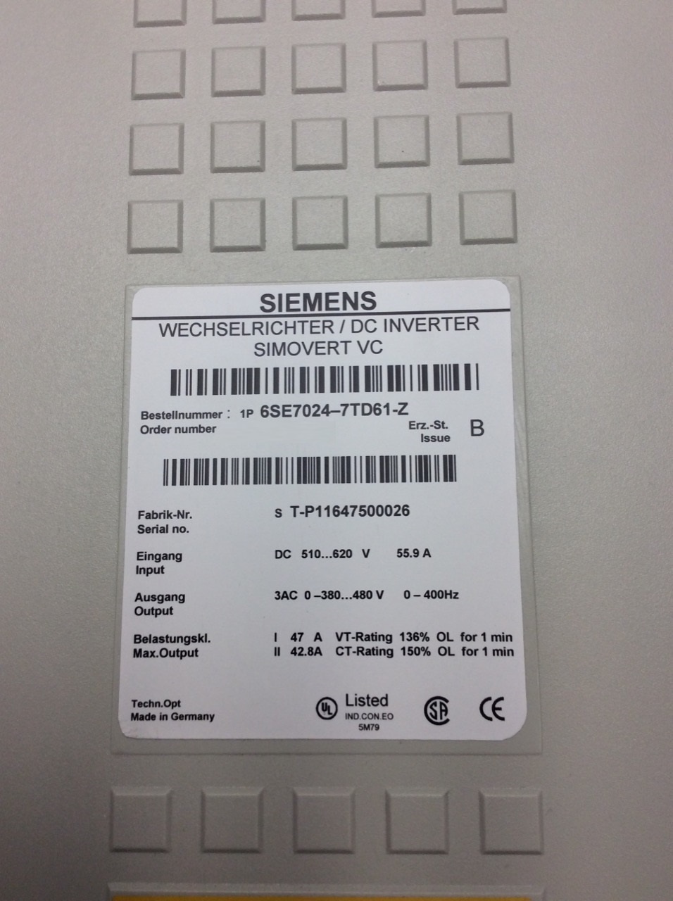 Variateur de Fréquence SIEMENS 6SE7024-7TD61-Z pour Applications Industrielles