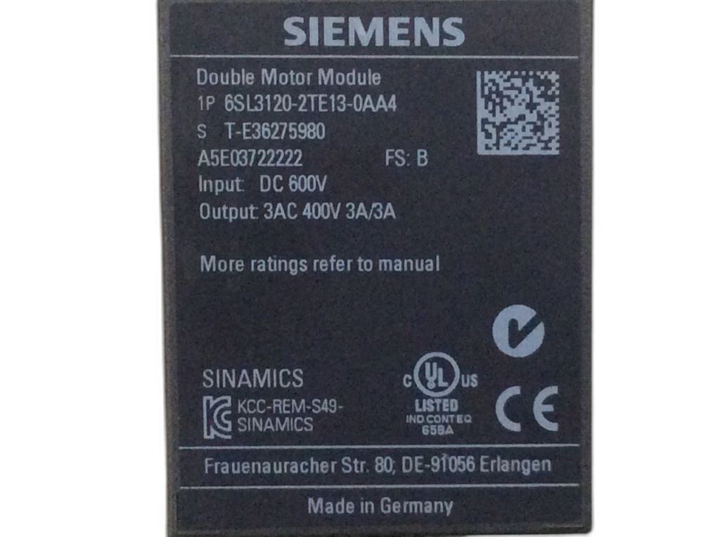 6SL3120-2TE13-0AA4 Module moteur à double entrées Sinamics Siemens