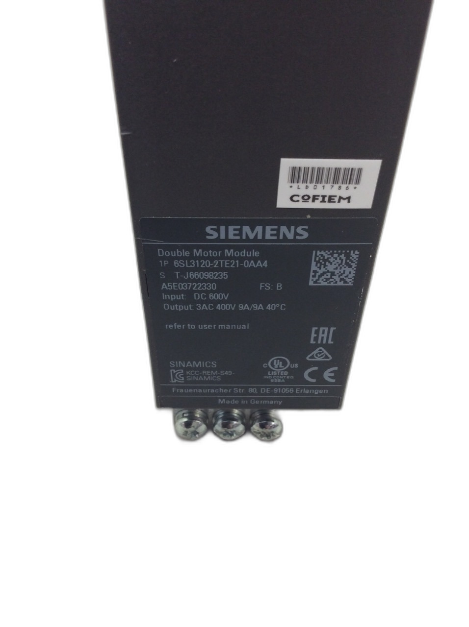 6SL3120-2TE21-0AA4 Module moteur à double entrées Sinamics Siemens