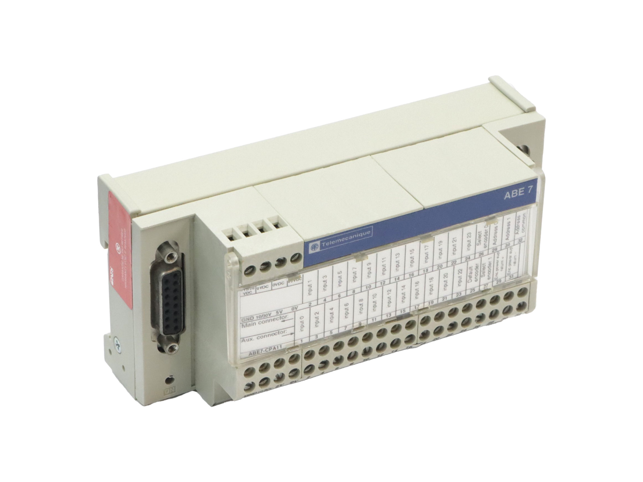 ABE7CPA11 de la gamme Advantys Telefast ABE 7. C'est une embase de raccordement adaptée aux applications de comptage et aux voies analogiques, conçue spécifiquement pour la connexion d'un codeur absolu avec sortie parallèle. Elle est compatible avec les automates de la série Premium, incluant les modèles TSXCAY21, TSXCAY41, TSXCTY2A et TSXCTY4A. Sur le plan technique, l'embase ABE7CPA11 est conçue pour fonctionner avec une tension de circuit de commande de 24 V CC ou de 5 V CC. Elle est équipée d'un seul canal et se connecte via un port SUB-D 15. Les bornes de type vis sont adaptées pour des câbles de 0,09 à 2,5 mm², offrant des options pour des câbles souples avec ou sans embout et des câbles rigides. La tension assignée d'isolement est de 2000 V entre les bornes et les rails de montage. L'installation est prévue pour un rail DIN symétrique de 35 mm ou par vis avec un kit de fixation. L'embase ABE7CPA11 respecte plusieurs certifications, dont BV, DNV, CSA, GL, UL et LROS (Lloyds Register of Shipping). Elle bénéficie d'un degré de protection IP20 selon la norme CEI 60529 et a subi un traitement contre la corrosion. La tenue au fil incandescent est de 750 °C selon la norme CEI 60695-2-11. La résistance aux chocs mécaniques est de 15 gn pour 11 ms, et aux vibrations de 2 gn (f= 10…150 Hz), conformément à la norme CEI 60068. Elle est aussi résistante aux décharges électrostatiques et aux champs rayonnés, répondant aux niveaux 3 de la norme CEI 61000. Pour les applications nécessitant ce type de connexion, l'embase ABE7CPA11 est couramment utilisée pour relier un codeur absolu à un automate programmable, facilitant la détection de position ou de vitesse dans des environnements industriels tels que les systèmes de convoyage ou de positionnement.