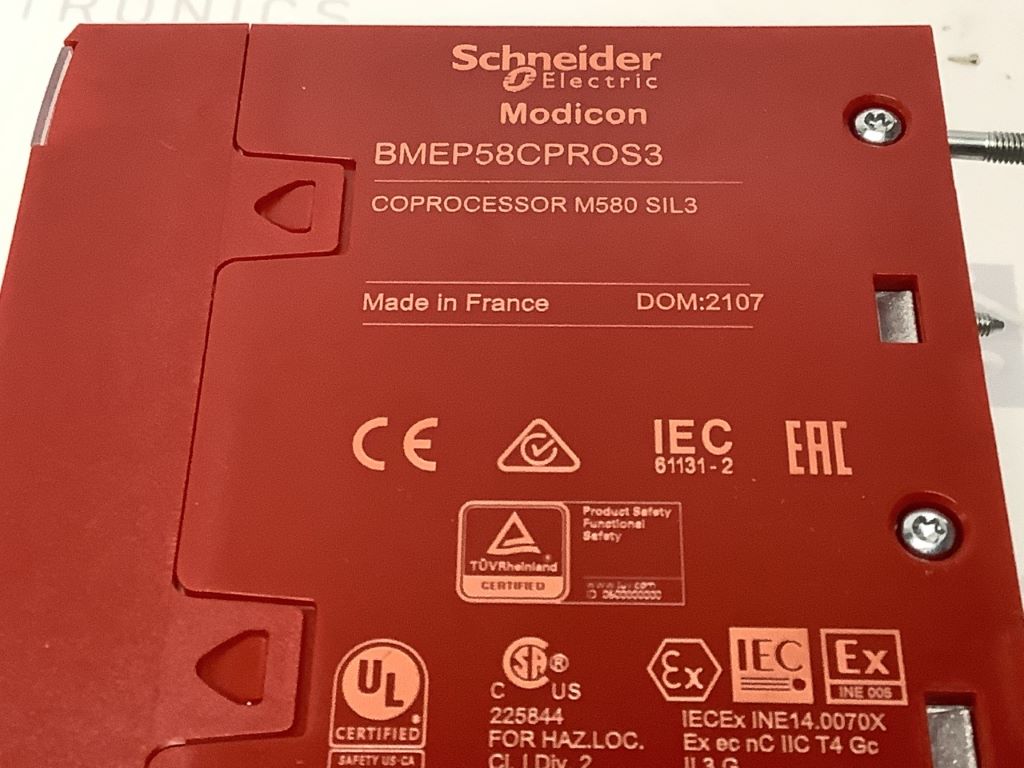 BMEP58CPROS3 fait partie de la gamme Modicon M580 de Schneider Electric. Ce module processeur ePac Controller est spécialement conçu pour des applications de sécurité exigeantes, répondant au niveau de performance SIL 3. Avec une consommation électrique de 295 mA à 24 V CC et une durée de vie moyenne avant panne (MTBF) de 946 000 heures, ce module est un choix de fiabilité. Il porte le marquage CE, confirmant sa conformité avec les normes européennes. Le BMEP58CPROS3 est capable de fonctionner dans une plage de températures de -25 à 60 °C et peut être stocké entre -40 et 85 °C. Il est conçu pour opérer efficacement jusqu'à une altitude de 2000 m, au-delà de laquelle une diminution de performance est à prévoir jusqu'à 5000 m. Sa résistance aux vibrations de 3 gn et aux chocs mécaniques de 15 gn témoigne de sa robustesse. Le degré de protection IP20 garantit une protection contre les objets solides de plus de 12,5 mm, bien qu'il ne soit pas étanche. Ce produit est conforme à la directive de compatibilité électromagnétique 2014/30/EU, la directive machine 2006/42/CE, la directive ATEX 2014/34/EU, et bénéficie de certifications de la part d'organismes reconnus tels que CE, UL, CSA, RCM, EAC, Marine marchande, ATEX zone 2/22, IECEx zone 2/22 et TÜV. Il répond aussi aux normes EN/CEI 61131-2, EN/CEI 61010-2-201, UL 61010-2-201, CSA C22.2 No 61010-2-201, IACS E10, EN/CEI 61000-6-5, et EN/CEI 61850-3. Le BMEP58CPROS3 est parfaitement adapté pour les systèmes de contrôle de sécurité dans les milieux industriels où la fiabilité et le respect des normes de sécurité sont essentiels.