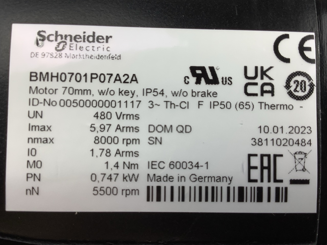 Servomoteur Synchrone SCHNEIDER ELECTRIC BMH0701P07A2A