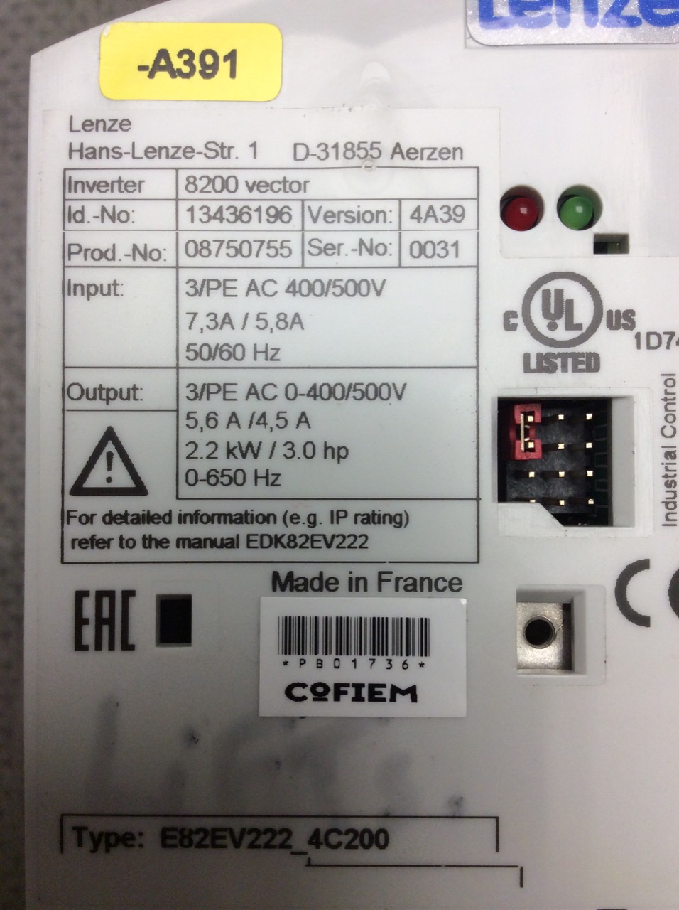 E82EV222-4C200 Variateur de fréquence 8200 Series Lenze