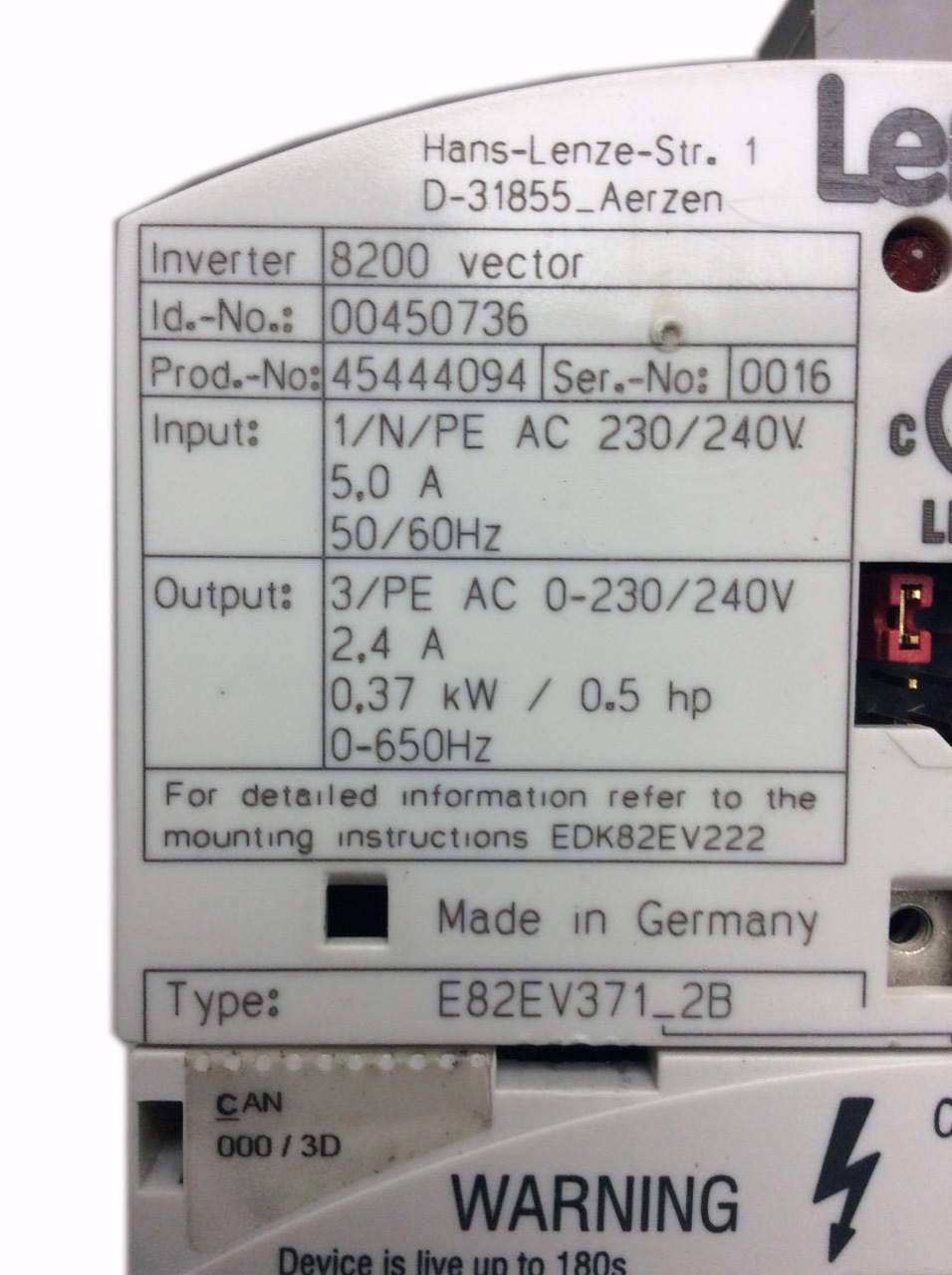 E82EV371-2B Variateur de fréquence 8200 Series Lenze