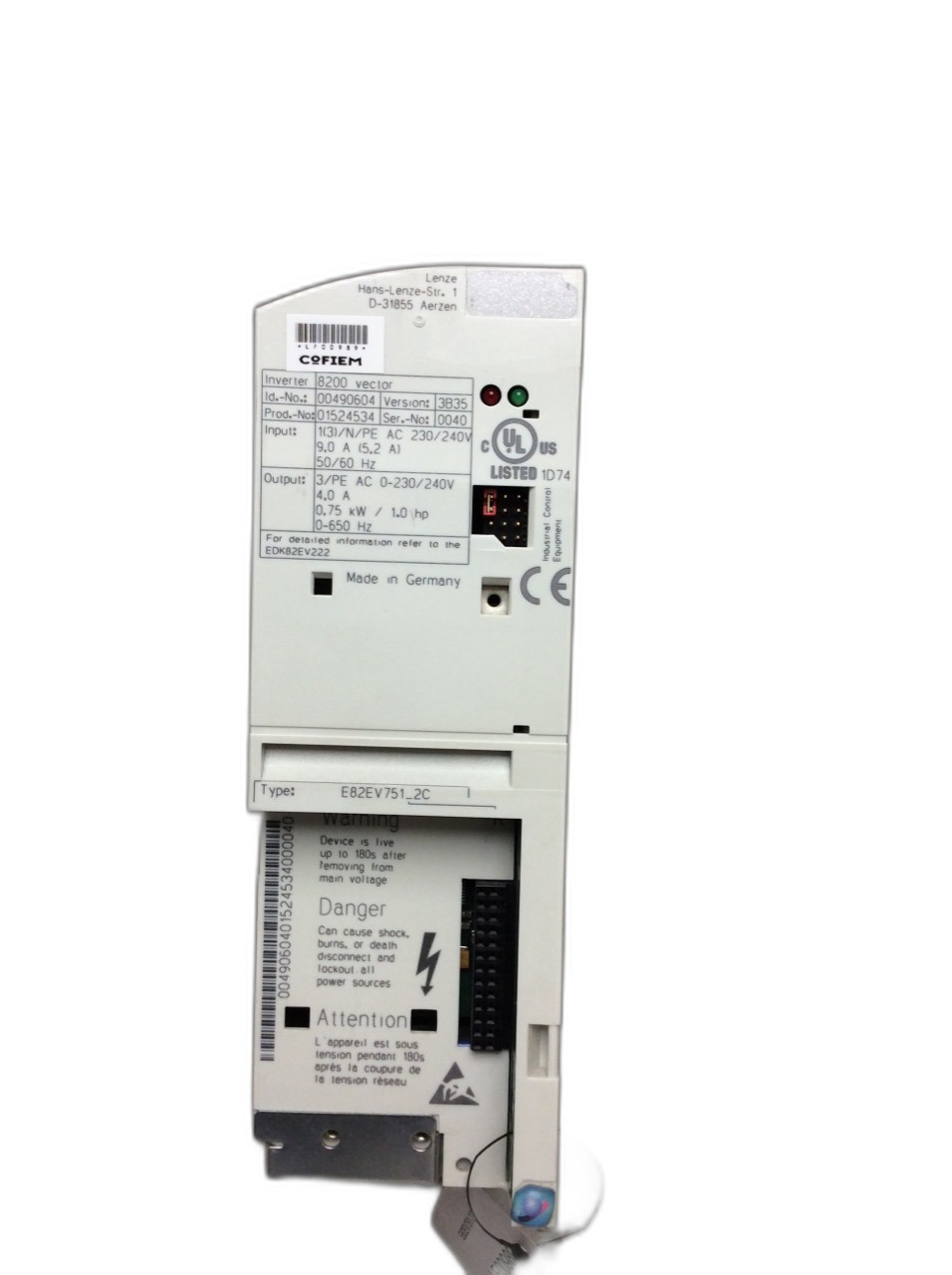 E82EV751-2C Variateur de fréquence 8200 Series Lenze