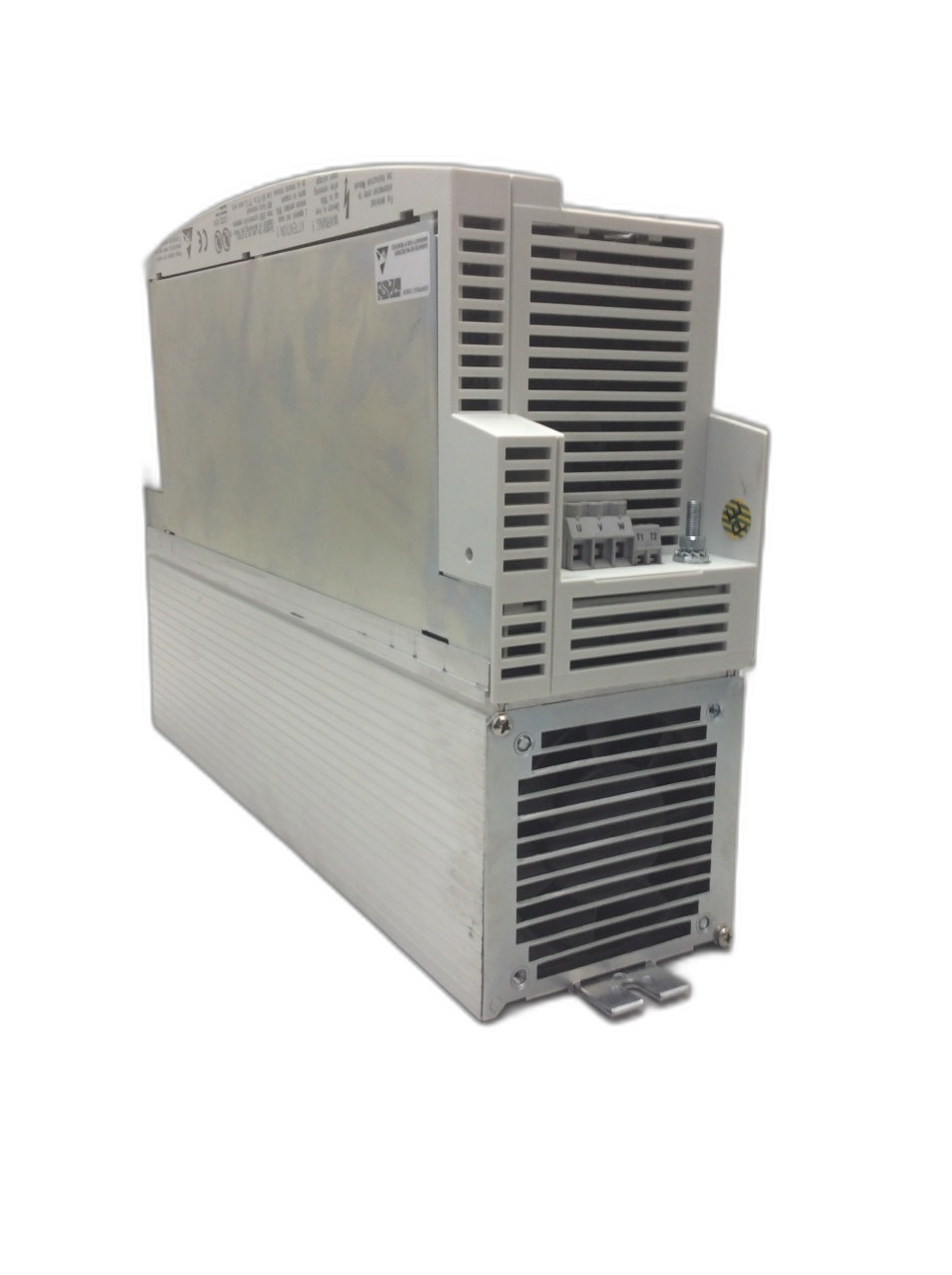 Le servo variateur Lenze de la série 9300 EVS9324-ES est un composant industriel de haute performance conçu pour des applications de commande de moteurs exigeantes. Ce modèle est adapté pour une alimentation réseau de 400 V CA, avec une plage de tension d'alimentation de 320 V CA à 440 V CA pour le raccordement sur réseau CA, et de 450 V CC à 620 V CC pour le raccordement sur réseau CC en option. La tension de sortie peut atteindre environ 94 % de la tension nominale d'alimentation avec un self réseau, et jusqu'à la tension nominale sans self réseau. Il est capable de fournir un courant nominal de sortie de 7,0 A avec une fréquence de découpage de 8 kHz, et de 5,2 A avec une fréquence de découpage de 16 kHz. Le courant maximal en surintensité est de 10,5 A pour une fréquence de découpage de 8 kHz et de 7,8 A pour 16 kHz, avec une durée de surintensité de 1 minute suivie d'une charge fondamentale de 2 minutes à 75 % du courant nominal. Le servo variateur EVS9324-ES est conforme à la directive Basse Tension 2006/95/CE, la directive CEM 2004/108/CE, et les normes CEI/EN 61800-5-1 pour la sécurité des équipements à basse tension et CEI/EN 61800-3 pour la compatibilité électromagnétique. Il est également homologué UL sous UL 508C pour les équipements de contrôle industriel. En termes de protection, il est classé IP20 selon la norme EN 60529, offrant une protection contre les contacts accidentels. Il est conçu pour fonctionner dans des conditions climatiques de 0 à +55 °C (pour les modèles EVS9321 à EVS9326) et de 0 à +50 °C (pour les modèles EVS9327 à EVS9332), avec une réduction du courant nominal de sortie de 2,5 % par degré Celsius au-dessus de +40 °C. Le servo variateur EVS9324-ES est idéal pour des tâches telles que le positionnement précis, le contrôle de vitesse et de couple, et peut être utilisé dans des systèmes d'entraînement complexes nécessitant une régulation dynamique et précise. Un exemple d'utilisation, le servo variateur EVS9324-ES peut être utilisé dans des applications telles que les machines-outils CNC, les systèmes de convoyage, ou les presses où une régulation précise de la vitesse et du positionnement est cruciale pour la performance et la qualité du processus.