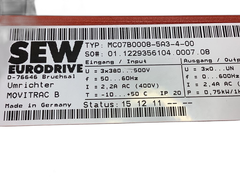MC07B0008-5A3-4-00 Variateur de fréquence Movitrac® Sew Eurodrive