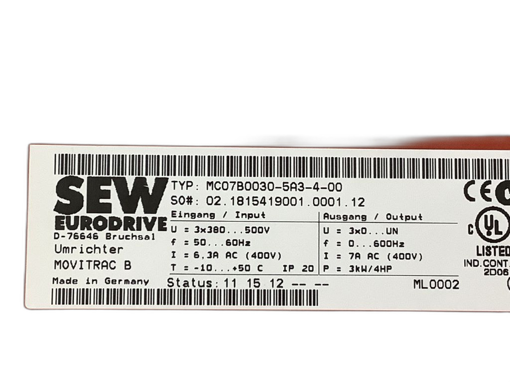 MC07B0030-5A3-4-00 Variateur de fréquence Movitrac® Sew Eurodrive