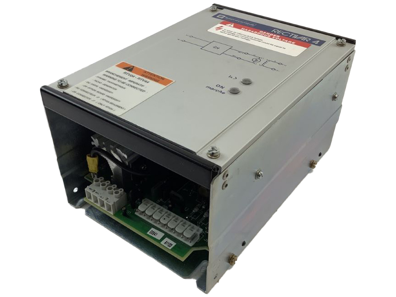 RTV04D12Q de la gamme Rectivar Mono Uni, spécialement conçue pour des applications d'alimentation électrique. Le RTV04D12Q est un dispositif qui opère à une tension de 380V et délivre un courant de 12A, répondant aux besoins des applications nécessitant une source d'énergie stable et fiable. Cet équipement est idéal pour une utilisation dans des contextes industriels exigeant une alimentation électrique régulée, comme dans les processus de fabrication automatisés ou les systèmes de contrôle de machines.