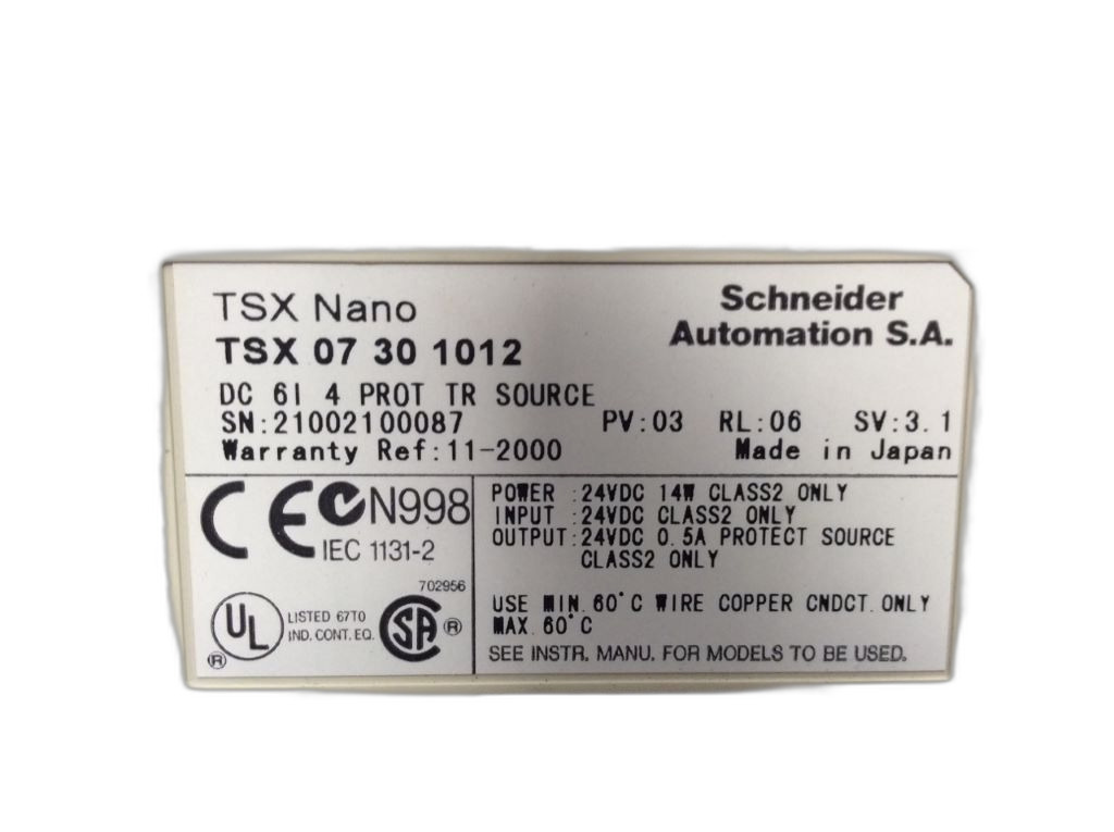 TSX07301012 Automate programmable TSX Nano Schneider Telemecanique 24 VCC 6 entrées numériques isolées 4 sorties numériques protégées Transistor port RS485