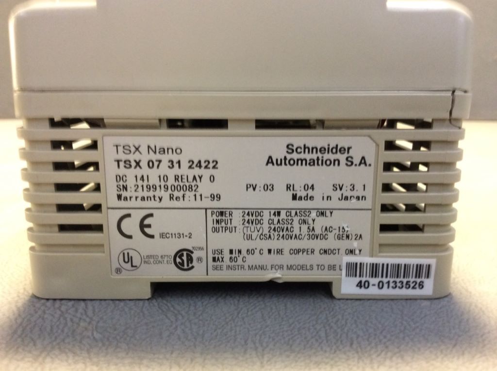 TSX07312422 Automate programmable TSX Nano Schneider Telemecanique 14 E/S numériques 24 VCC 10 sorties relais 64 Ko 20 Ko Port série RS-232