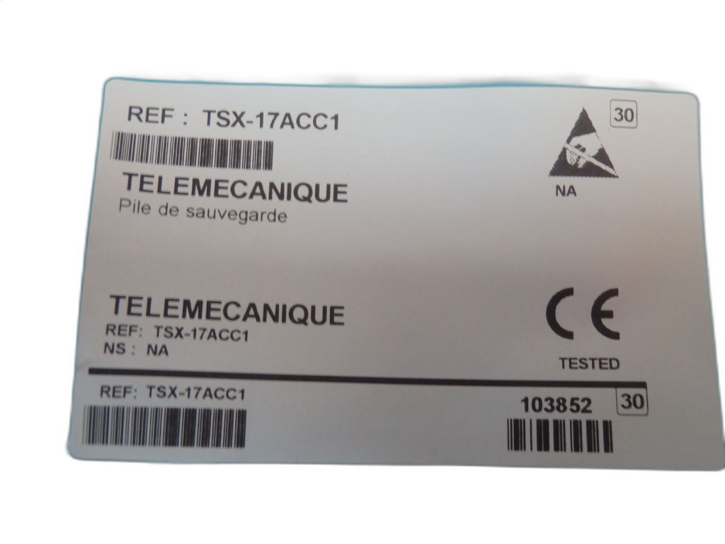 TSX17ACC1 de la gamme TSX séries de Télémécanique Schneider Electric et est une pile conçue pour les automates programmables TSX séries. La TSX17ACC1 est spécifiquement conçue pour maintenir l'alimentation de la mémoire de sauvegarde dans les automates de la série TSX17. La pile TSX17ACC1 est essentielle pour garantir le fonctionnement continu des programmes et des données enregistrées dans la mémoire des automates TSX17, permettant ainsi une reprise rapide et sûre des opérations après une interruption de l'alimentation électrique.