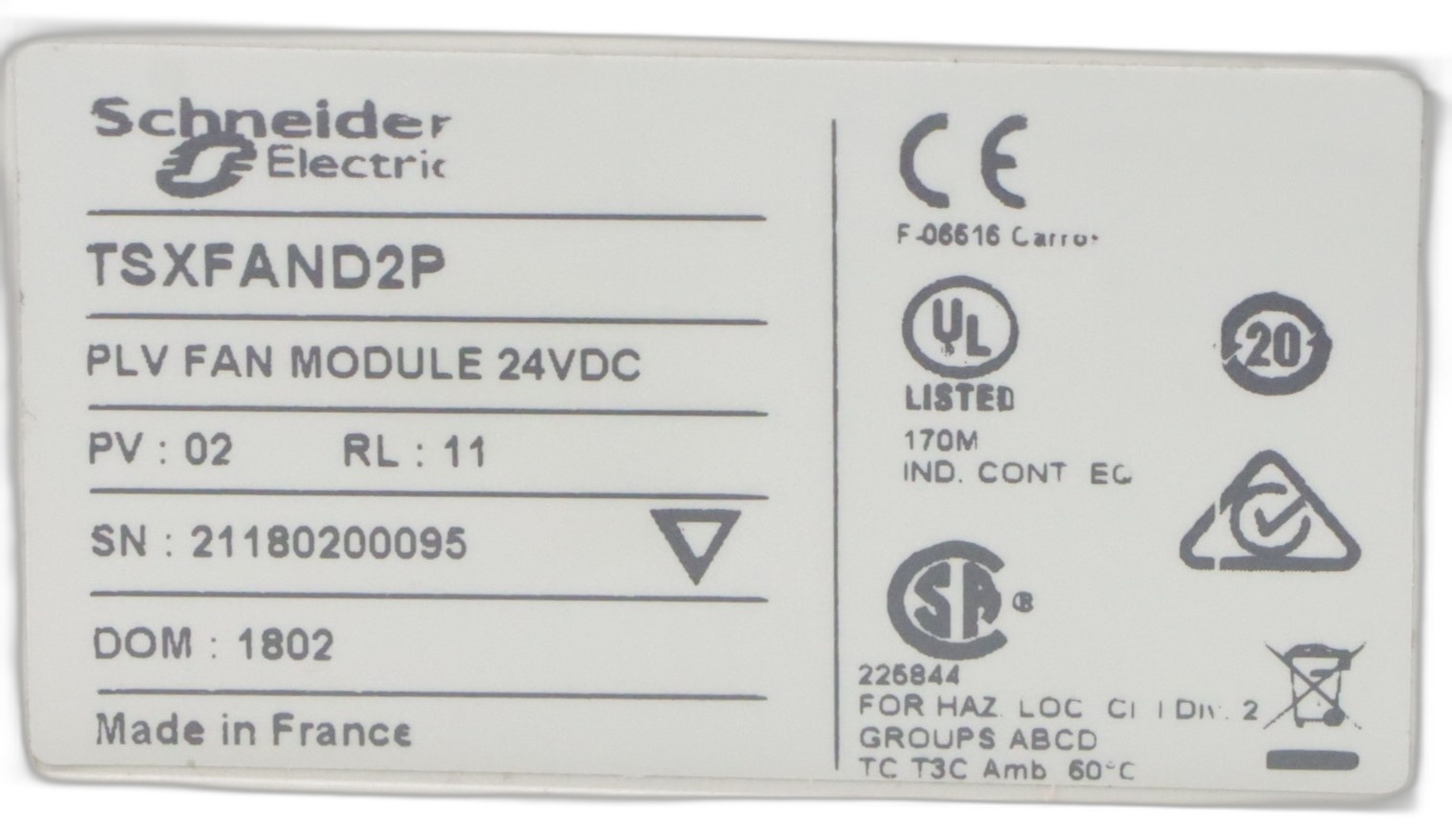 Module de Ventilation Schneider Electric TSXFAND2P pour Automatisation Industrielle