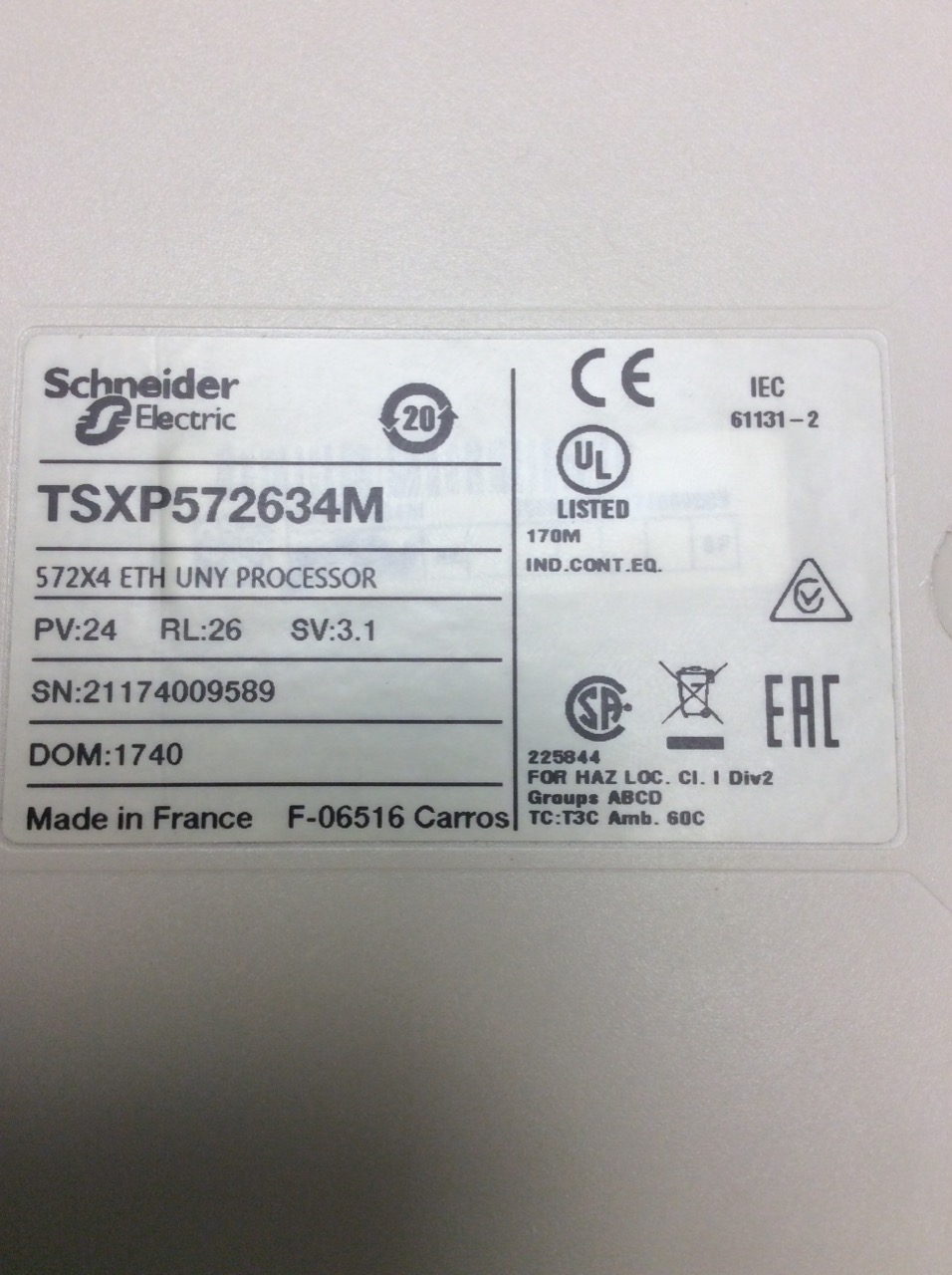 TSXP572634M Processeur Modicon Premium Schneider Electric