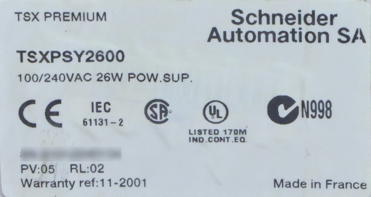 TSXPSY2600 Alimentation Modicon Premium Schneider Electric