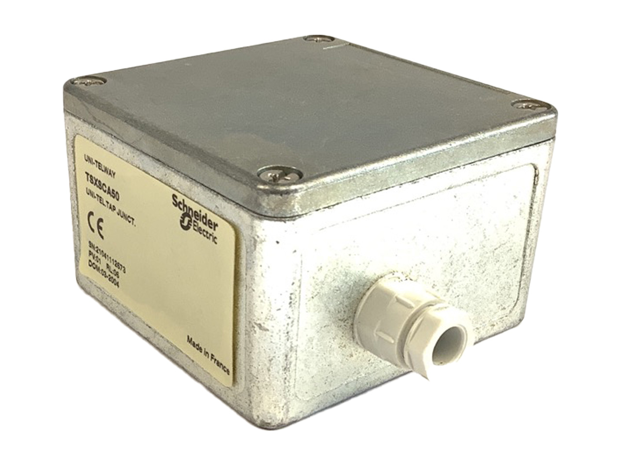 Le produit TSXSCA50 de la gamme Modicon Premium, une série d'automates programmables industriels de Télémécanique Schneider Electric. Ce modèle est un boîtier de dérivation passif Modbus, doté de 3 bornes à vis et d'une terminaison de ligne RC, conçu pour des applications de connexion série RS485, telles que l'extension de ligne et la dérivation à simple canal. Sur le plan technique, le TSXSCA50 s'appuie sur le protocole de communication Modbus, un standard industriel pour la communication entre dispositifs automatisés. La connexion électrique est assurée par un bornier à vis, offrant une connexion fiable et pérenne. Avec un poids de 0,52 kg, ce produit est facile à manipuler pour des installations dans divers contextes industriels. En ce qui concerne les normes, le TSXSCA50 respecte la directive RoHS de l'Union européenne, garantissant une fabrication limitant l'utilisation de substances dangereuses conformément aux réglementations en vigueur. Le TSXSCA50 est idéal pour des systèmes nécessitant une extension de ligne Modbus ou une dérivation, facilitant ainsi la communication entre différents dispositifs automatisés dans une installation industrielle. Cela est particulièrement utile dans des configurations où plusieurs appareils doivent être interconnectés en série pour assurer une communication de données cohérente et fiable.
