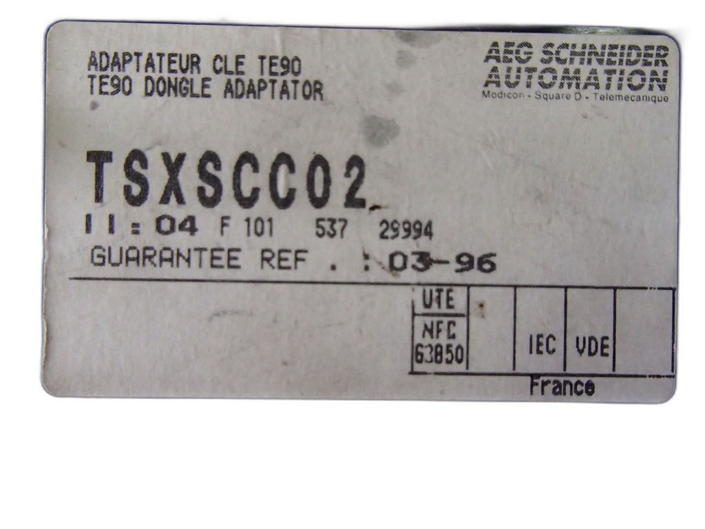 TSXSCC02 est un adaptateur clé TE90 , un produit de Télémécanique Schneider Electric. Le TSXSCC02 est un support de modules de clés utilisé dans les systèmes d'automatisation et de contrôle. Le TSXSCC02 peut être utilisé dans un système de contrôle industriel pour la gestion des accès ou la sécurisation des processus via des clés électroniques.