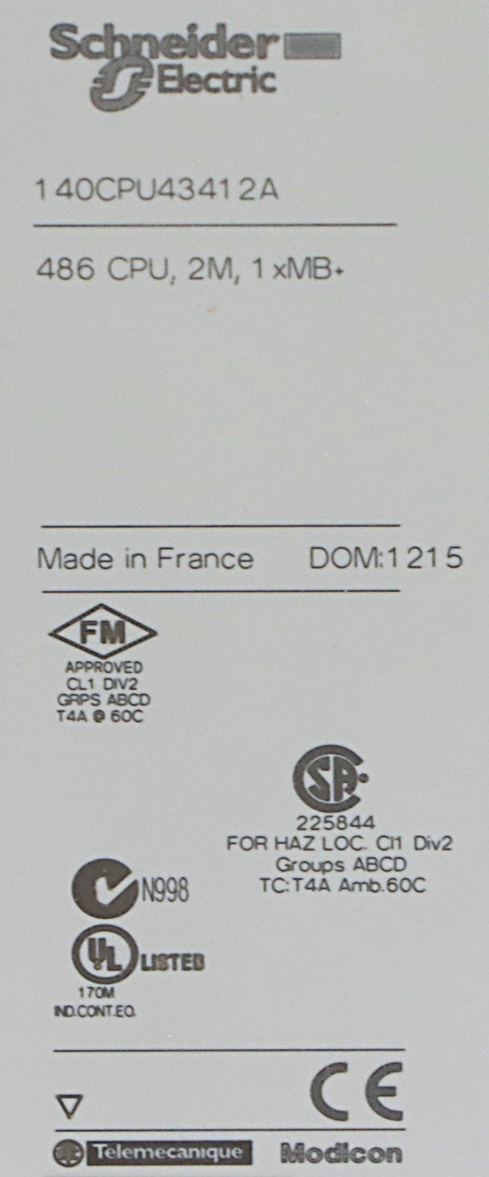 Contrôleur Logique Programmable Modicon Quantum 140CPU43412A