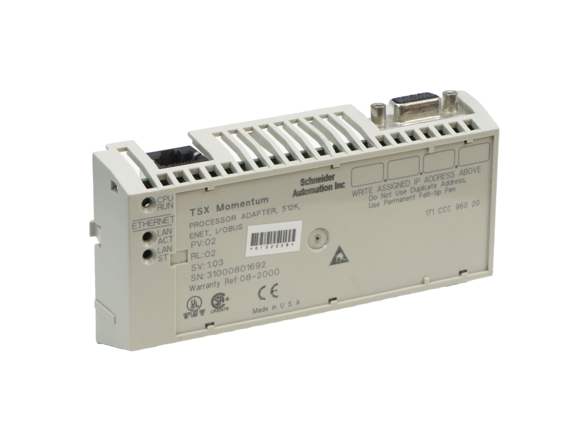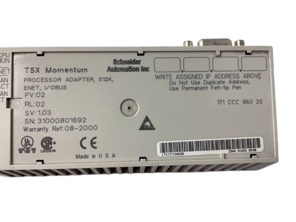 171CCC96020 Adaptateur de processeur M1/M1E Modicon Momentum Schneider Electric 50 MHz 512 Ko 1 port Etherent 1 bus d'E/S