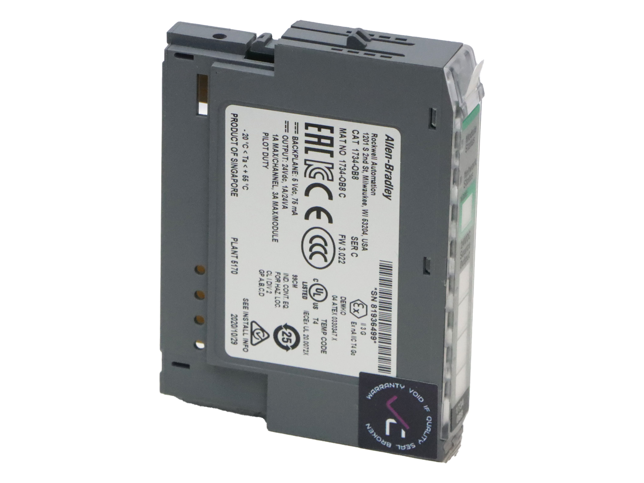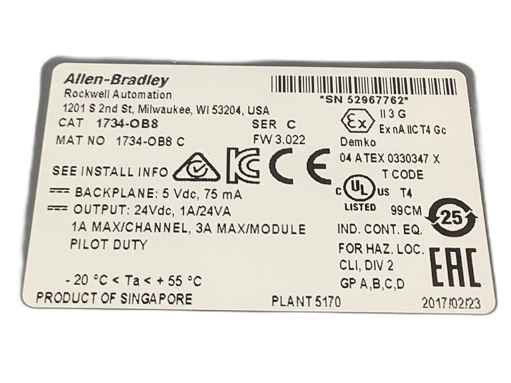 1734-OB8 Module sorties numériques TOR 8 sorties TOR 1734-Series Allen Bradley 24 VDC