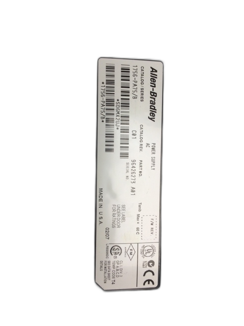 1756-PA75 Alimentation ControlLogix Allen Bradley 85-265 VAC