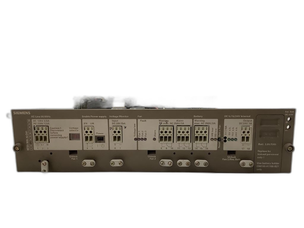 L'alimentation 955P 6ES5955-3LC41 fait partie de la gamme Simatic S5 de Siemens, conçue pour les automates programmables industriels. Elle est compatible avec les modèles ZG S5-135U/-155U, EG 183/185U, et supporte une tension de 230/120V CA. Cette alimentation est une solution fiable et robuste pour garantir une alimentation électrique stable et sécurisée à vos systèmes automatisés, assurant ainsi leur bon fonctionnement continu dans divers environnements industriels.