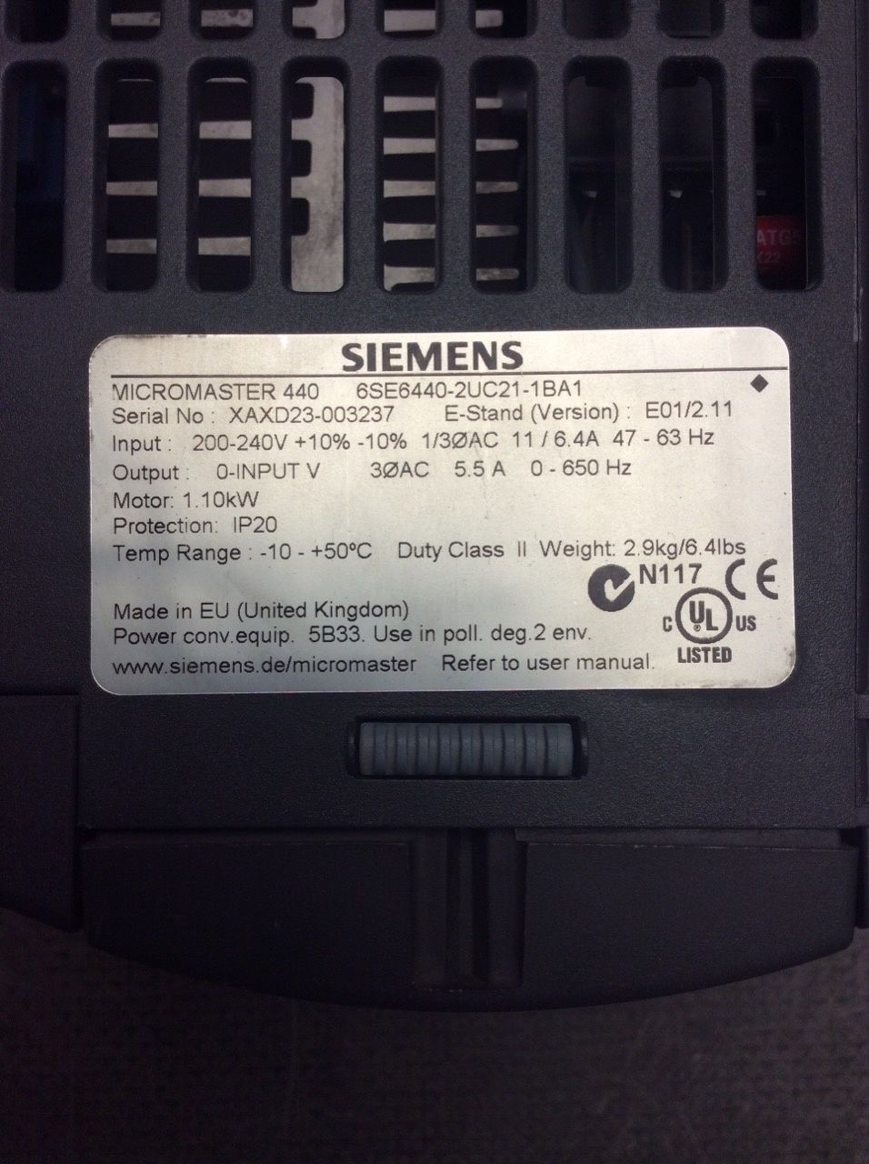 Variateur de Fréquence Siemens MICROMASTER 6SE6440-2UC21-1BA1