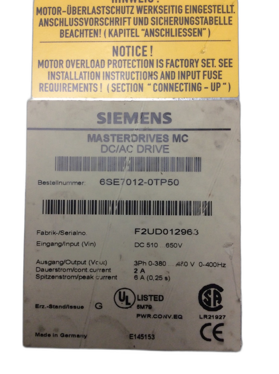 6SE7012-0TP50 Simovert Masterdrives Siemens