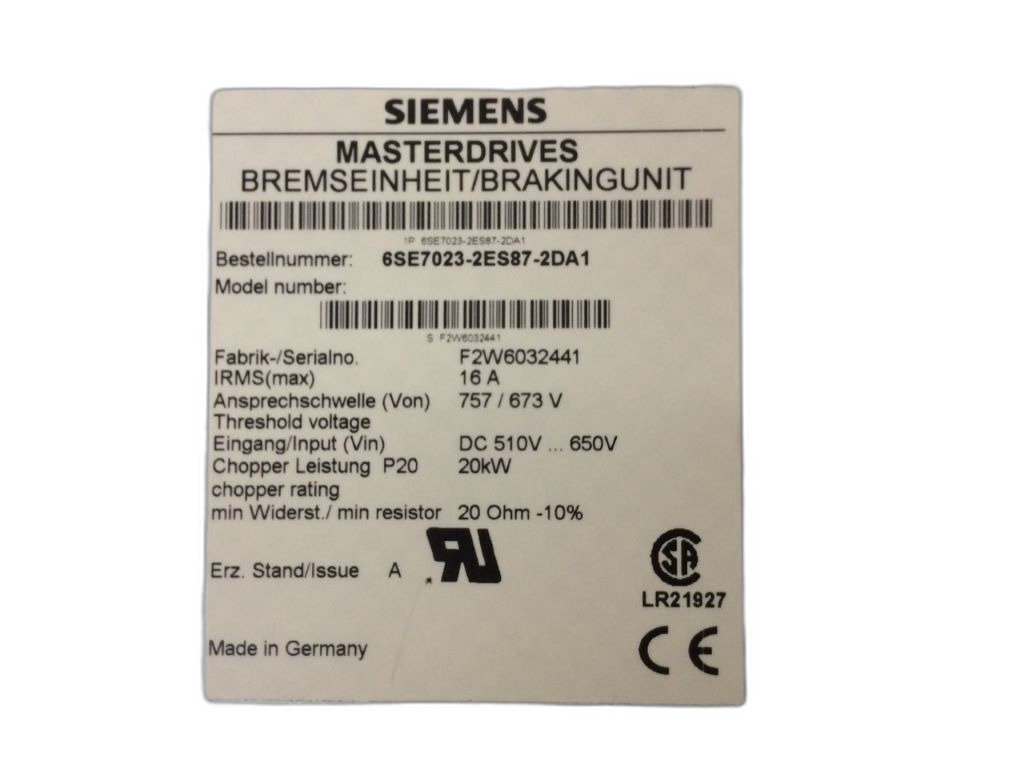 6SE7023-2ES87-2DA1 Module de freinage Simovert Masterdrives Siemens