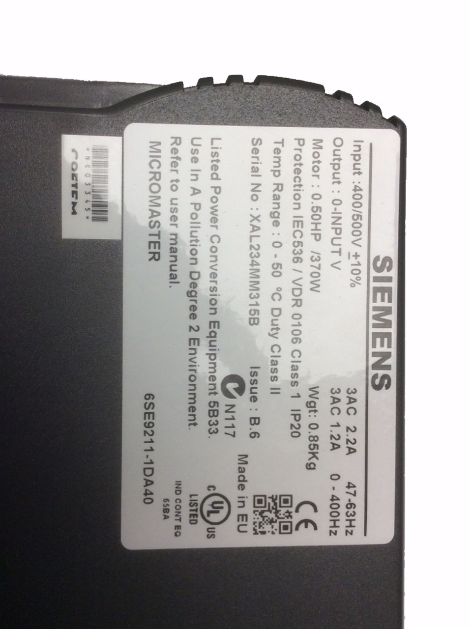 6SE9211-1DA40 Variateur de vitesse Micromaster Siemens