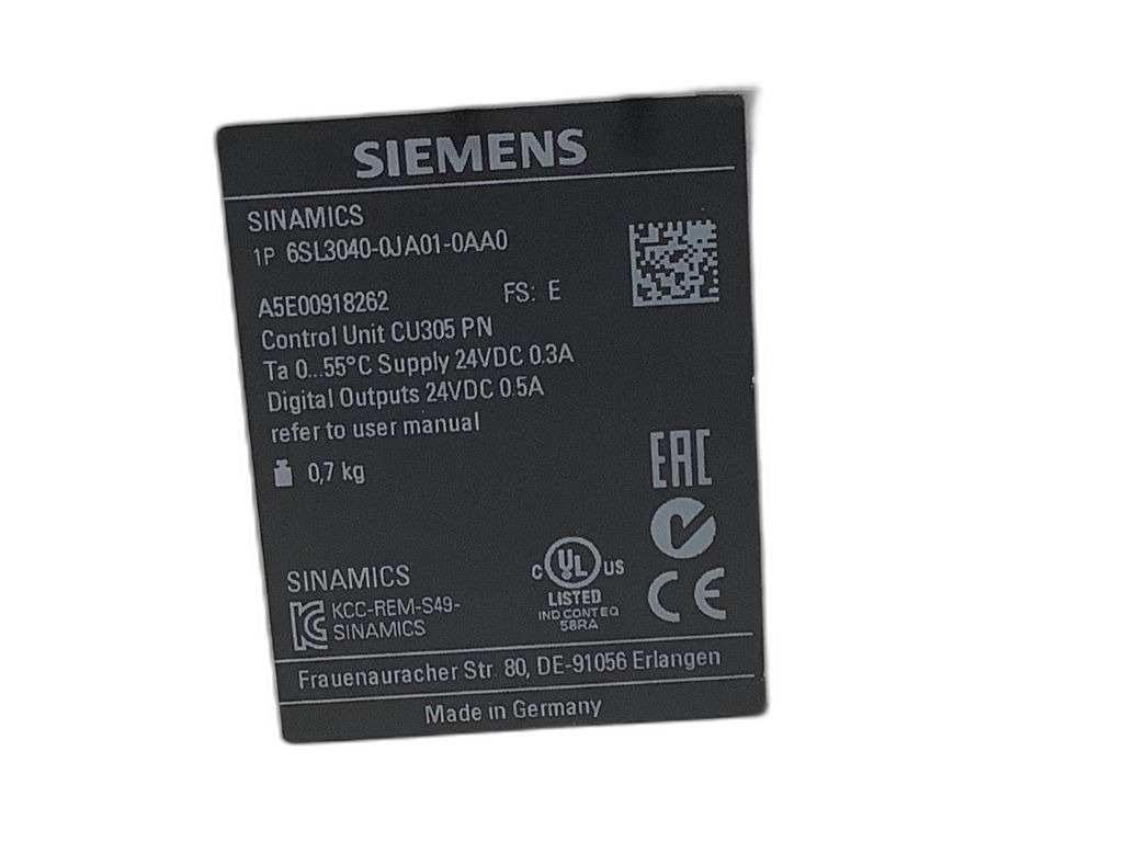 6SL3040-0JA01-0AA0 de la gamme Sinamics S110 Control Unit de Siemens. Il s'agit d'une unité de commande CU305 avec une interface Profinet, sans carte mémoire. Cette unité de commande est conçue pour être utilisée dans des applications industrielles nécessitant un contrôle précis des moteurs, avec une connectivité Ethernet pour le contrôle et le diagnostic à distance. Elle offre des fonctionnalités avancées de contrôle des moteurs tout en étant compatible avec différents accessoires et périphériques pour une intégration aisée dans les systèmes existants. Cette référence est souvent utilisée dans les applications industrielles telles que les lignes de production automatisées, les convoyeurs motorisés, les systèmes de manutention, les machines-outils à commande numérique, et les équipements de production alimentaire nécessitant un contrôle avancé des moteurs tout en offrant la possibilité de connectivité à un réseau informatique industriel.