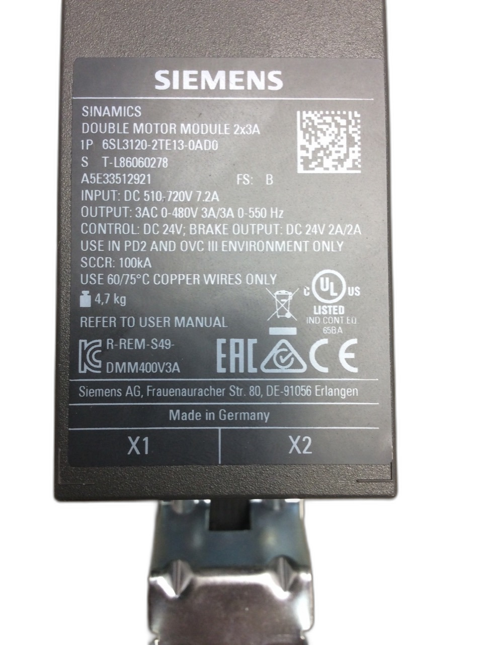 6SL3120-2TE13-0AD0 Module moteur à double entrées Sinamics Siemens