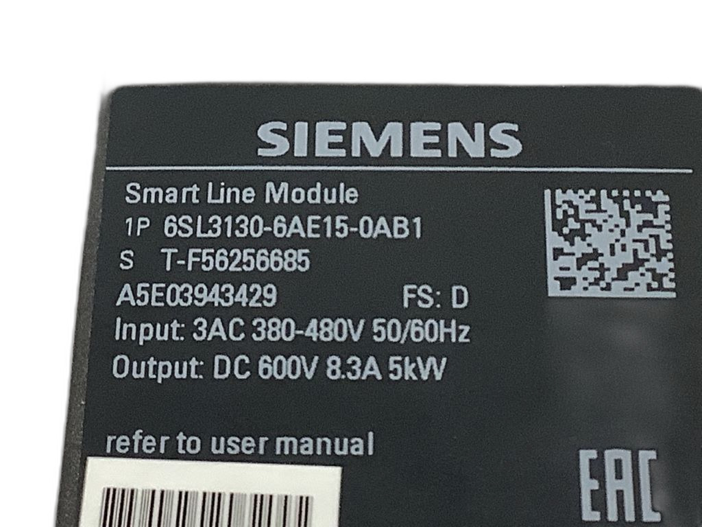6SL3130-6AE15-0AB1 de la gamme Sinamics S120 de Siemens. Il s'agit d'un module Smart Line de forme booksize, avec une tension d'entrée de 3 phases de 380-480 V, 50/60 Hz et une sortie de 600 V CC, 8,3 A, 5 kW. Il est conçu avec un refroidissement par air interne et inclut un module adaptateur de tension de commande. Ce type de module est communément utilisé dans les applications industrielles nécessitant un contrôle de vitesse et de position pour les moteurs électriques. Par exemple, il peut être utilisé dans des convoyeurs, des machines-outils à commande numérique, des systèmes de levage, ou encore dans des applications de contrôle de processus industriels.