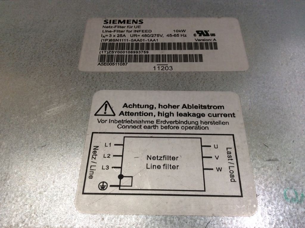 Module de Filtre de Courant Sinusoïdal SIEMENS 6SN1111-0AA01-1AA1 pour Convertisseurs de Puissance