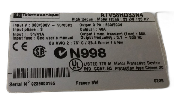ATV58HD33N4 Variateur de fréquence Altivar Schneider Telemecanique