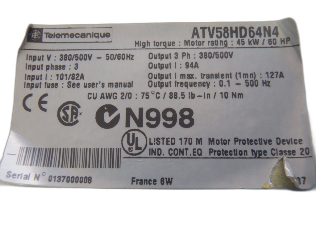 ATV58HD64N4 Variateur de fréquence Altivar Schneider Telemecanique