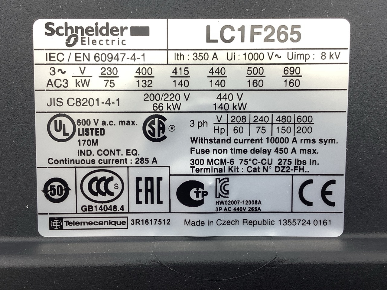 Contacteur Électrique Schneider LC1F265FE7 pour Conversion d'Énergie