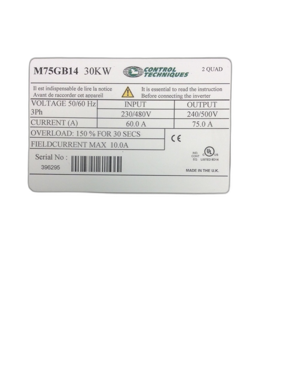 M75GB14 Variateur de fréquence Mentor II Control Techniques