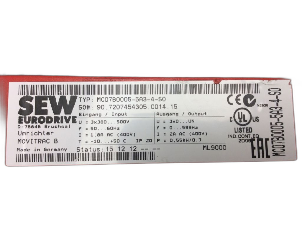 MC07B0005-5A3-4-S0 Variateur de fréquence Movitrac® Sew Eurodrive