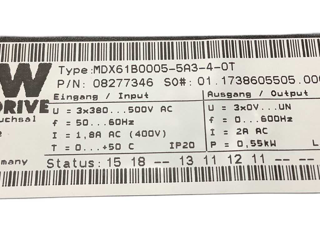 Le variateur de vitesse Movidrive® B MDX61B0005-5A3-4-0T est un produit de haute technologie conçu par Sew Eurodrive, faisant partie de la série Movidrive® B, appréciée pour son intégration optimale dans des systèmes d'automatisation complexes. Ce variateur se distingue par une tension de raccordement nominale de 380 V à 500 V triphasé, le rendant idéal pour diverses applications industrielles. Il offre une puissance apparente de sortie de 1.39 kVA et une puissance nominale de sortie de 0.55 kW, avec un courant nominal de sortie de 2.00 A. Sa température maximale de fonctionnement de 60°C garantit une performance fiable dans des conditions industrielles difficiles. Le Movidrive® B opère à une fréquence d'alimentation nominale de 50 – 60 Hz ± 5%, ce qui lui permet de s'ajuster à différents systèmes électriques. Avec des pertes en veille de seulement 13.0 W, il témoigne d'une excellente efficacité énergétique, même en dehors des périodes d'activité intense. Ce produit est conforme à la norme CEI 61800-9-2 et répond aux exigences du règlement relatif à l'écoconception UE 2019/1781, démontrant ainsi son engagement pour l'efficacité énergétique et la réduction de l'impact environnemental. Les variateurs de vitesse Movidrive® B sont couramment utilisés dans des applications telles que les convoyeurs, les machines d'emballage, les mélangeurs, et autres, où un contrôle précis de la vitesse et du couple des moteurs électriques est essentiel.