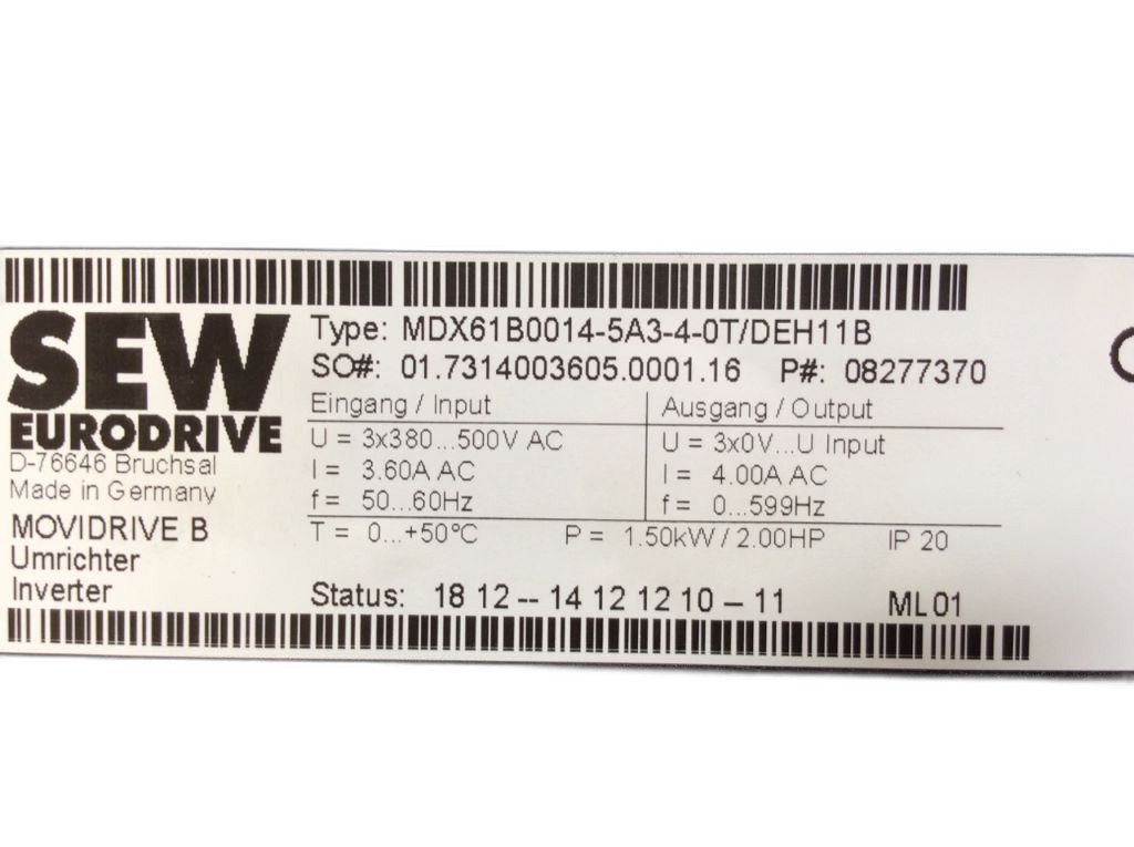 MDX61B0014-5A3-4-0T/DEH11B Variateur de vitesse Movidrive® Sew Eurodrive