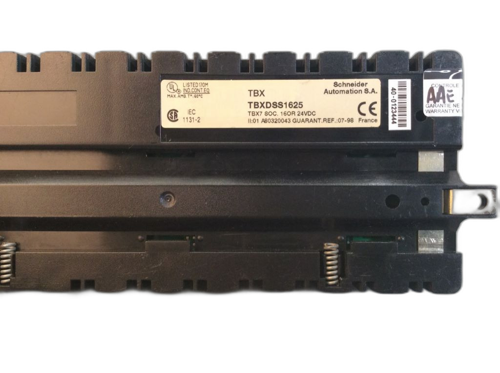 TBXDSS1625 de la gamme TBX7 de modules d'entrées/sorties déportées, conçus pour des applications d'automatisation industrielle. Ce produit est issu de Schneider Electric, qui est réputée pour ses solutions d'automatisme de haute performance. Le module TBXDSS1625 est un équipement d'automatisation qui servait à augmenter les capacités de contrôle d'un système d'automatisation en ajoutant des points d'entrée et de sortie supplémentaires. Ce module fonctionne avec une tension d'alimentation de 24 VCC, conforme à la norme industrielle pour les équipements de contrôle à basse tension. Les dimensions de l'emballage sont de 6,6 cm en hauteur, 9,5 cm en largeur et 24,7 cm en longueur, pour un poids de 0,662 kg, ce qui en fait un produit compact et facile à installer dans des espaces restreints des armoires électriques. Le TBXDSS1625 aurait pu être utilisé dans des systèmes de contrôle d'automatisation pour des machines industrielles, des lignes de production ou des processus nécessitant une extension des capacités d'entrée et de sortie.