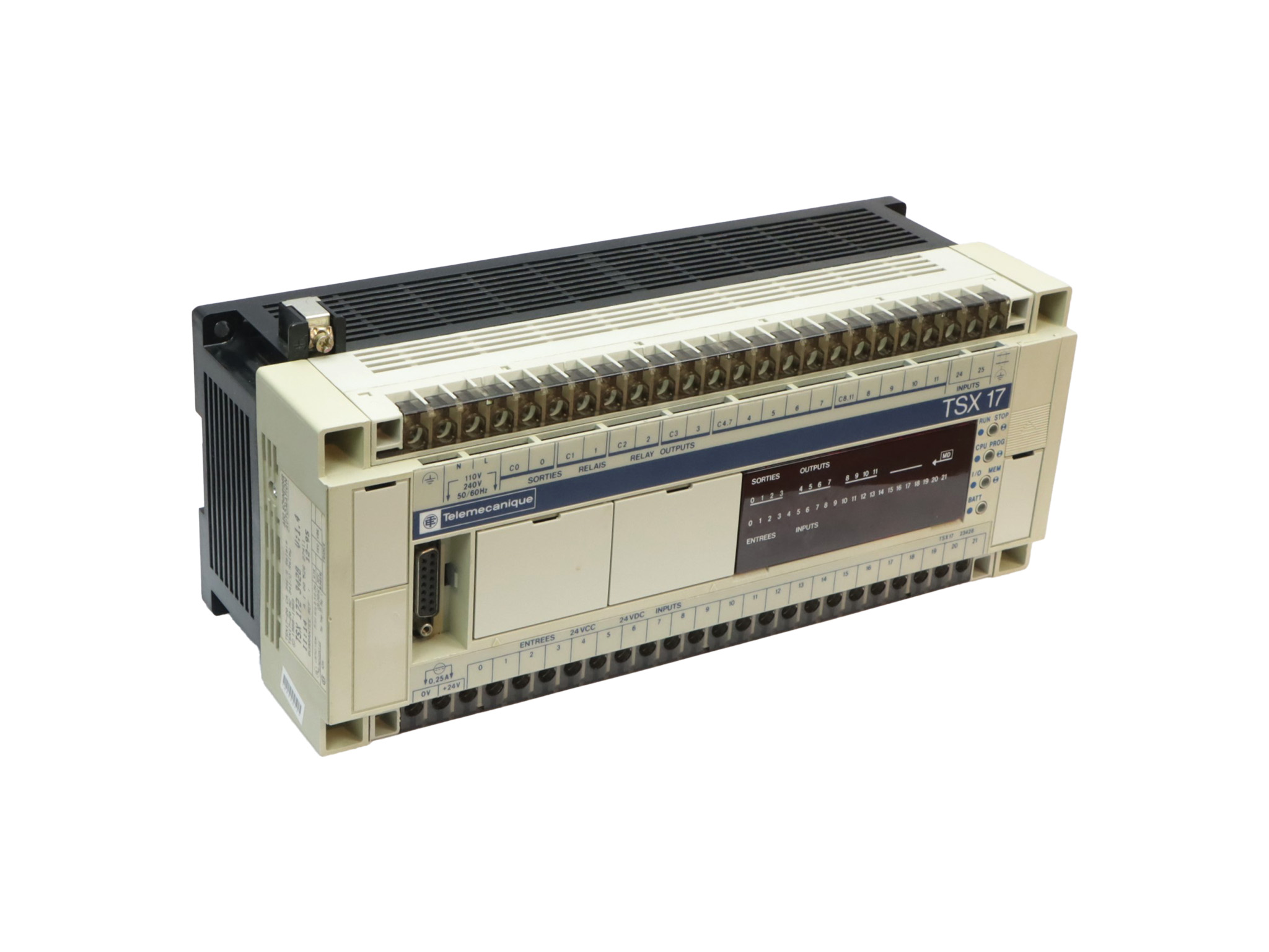 TSX1723428 Automate programmable TSX Série 7 Schneider Telemecanique 34 E/S 22 entrées 22E isolées 12 sorties 12S à relais 3A 110VAC à 240VAC 20 Ko Port RS-232